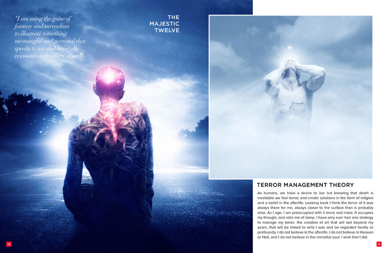 … I am exploring the individual at a crossroads in life, turning inward and facing who we are and what it means to be human at the fundamental level. I am using the guise of fantasy and surrealism to illustrate something meaningful and personal that speaks to me and hopefully resonates with others as well.